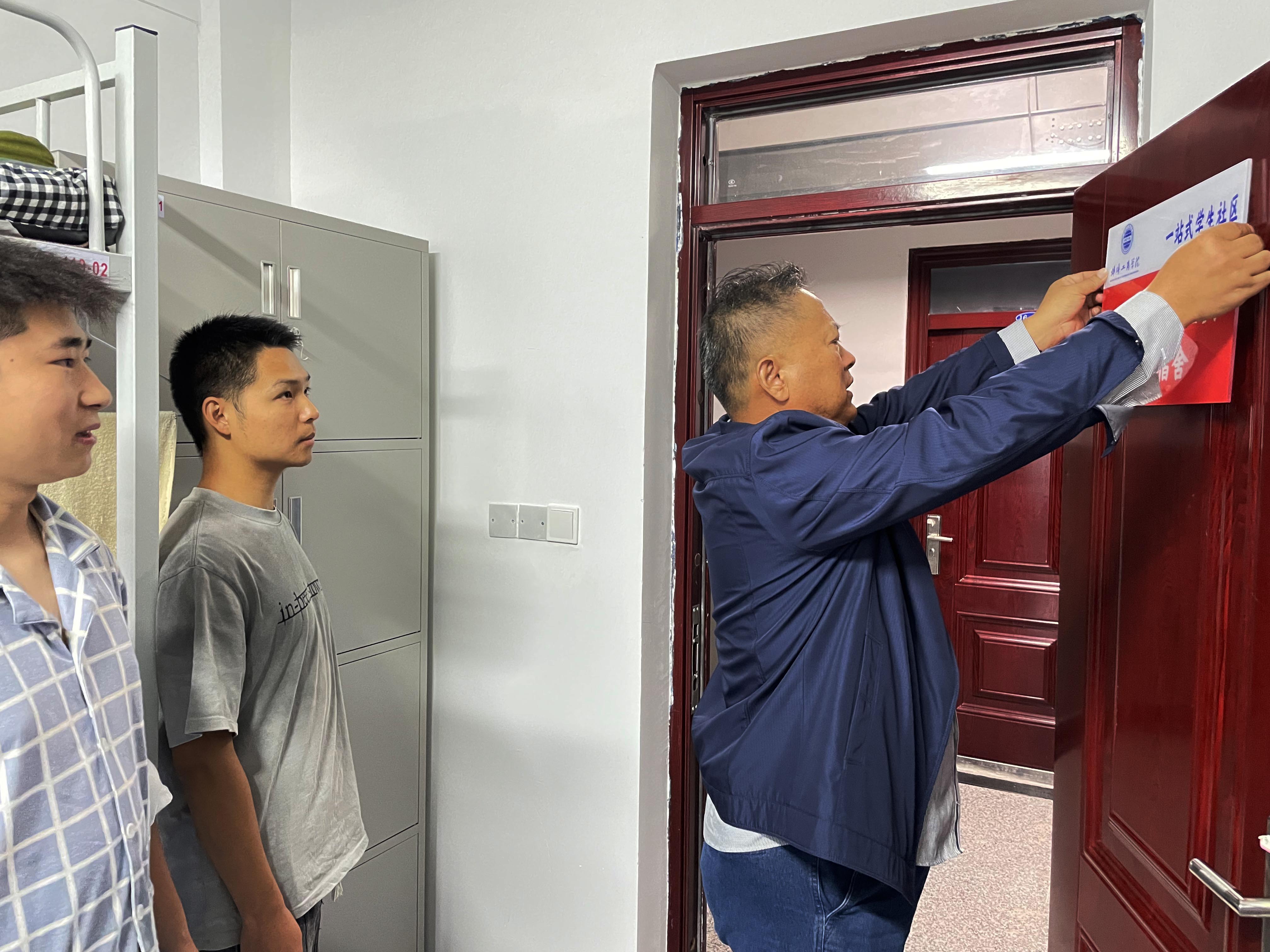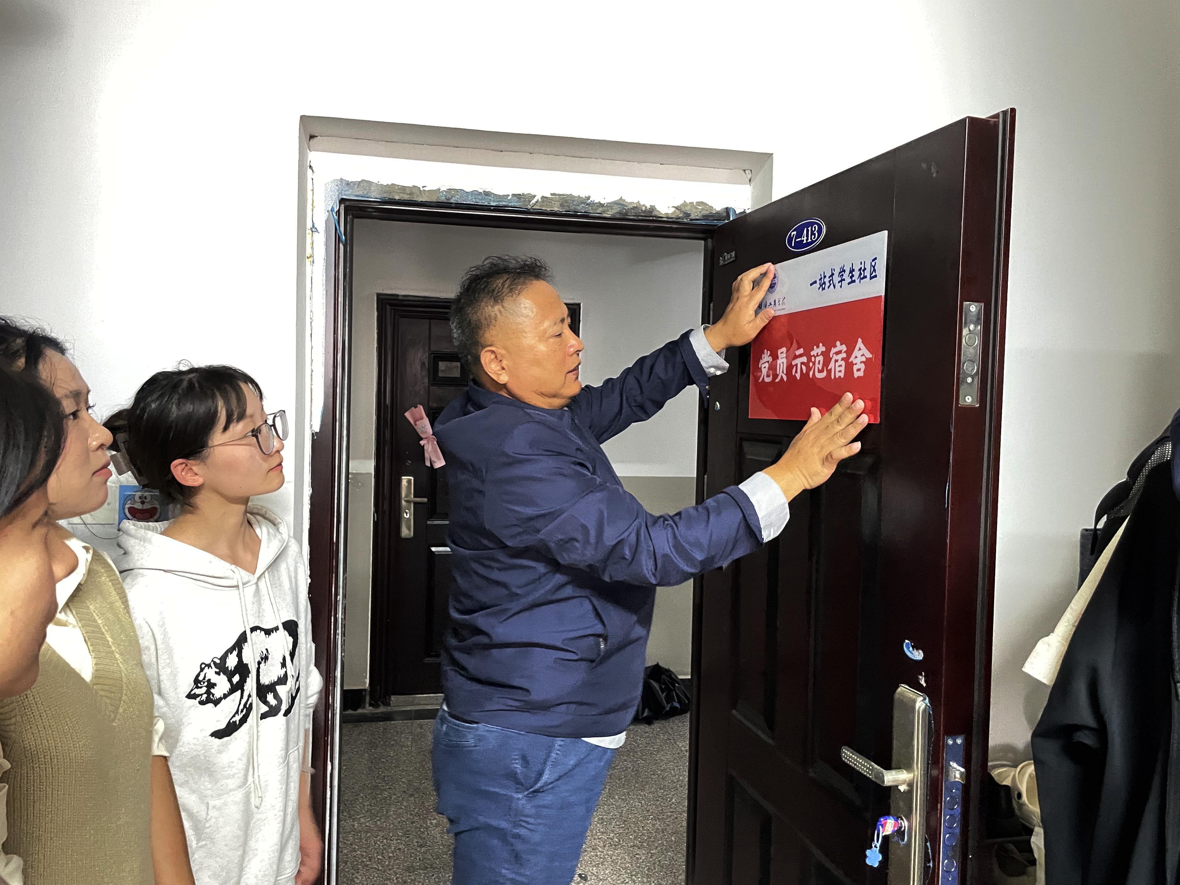 10月16日,我院党总支李荣书记带领院办公室工作人员一行,深入学生宿舍开展“示范宿舍”挂牌工作,是落实学校推行“一站式”学生社区的具体行动,也是贯彻“服务下沉、榜样引领、生态共建” 理念的具体体现,