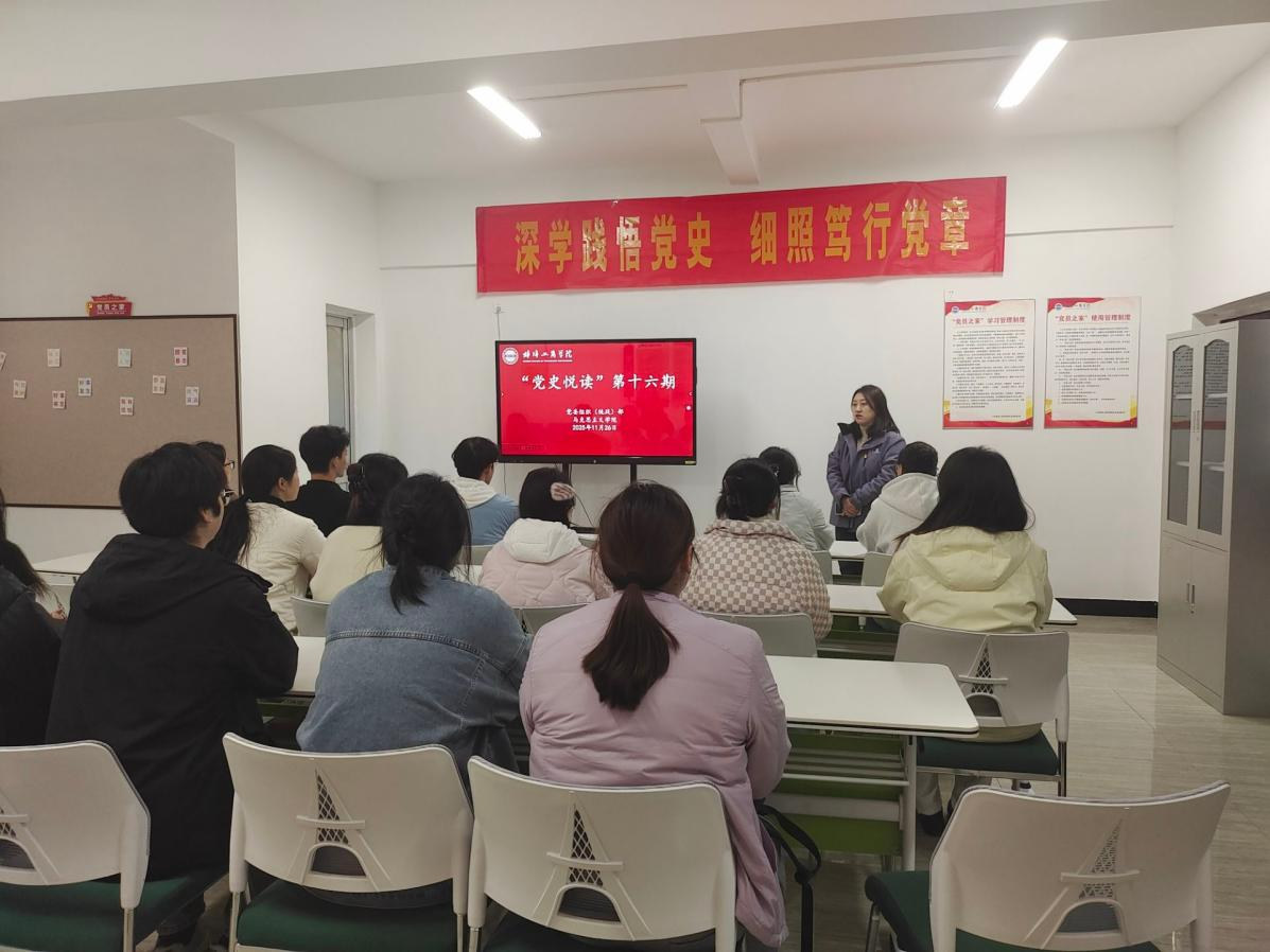 11月26日下午,人文与艺术学院学生第二党支部在一站式学生社区“党员之家”开展“党史悦读”主题活动,支部全体党员参与,由学生二支部书记张玮笑主持。活动以观影分享为载体深化党史学习教育,引导党员传承红色基因、汲取奋进力量。