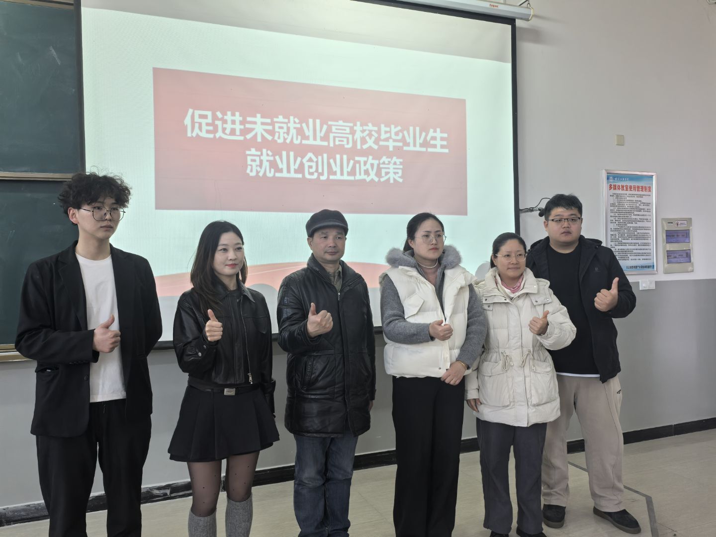 宣讲现场,高新区人社局工作人员聚焦入职求职、自主创业、就业见习、灵活就业四大方向,详细解读补贴申领条件、政策减免范围、人才扶持措施、创业帮扶渠道等“一揽子” 政策,明确各项政策的责任主体及咨询方式。人文与艺术学院教师同步引导学生结合专业发展提问,活动通过 “政策解读 + 案例分析(如文创项目创业补贴)+ 互动答疑” 的多元模式,帮助学生精准理解政策红利,明晰职业发展路径。