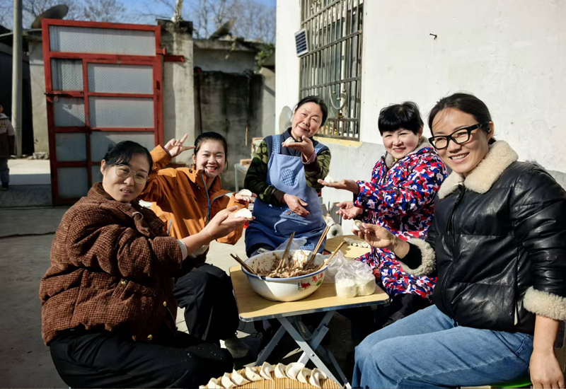 与此同时,另一边的“团圆场景”同样温馨动人。宇萱妈妈热情张罗,与学院朱洁老师及爱心志愿者协会成员围坐一堂,揉面、擀皮、调馅、包捏,一双双巧手将满满的关爱包进一个个饱满的饺子中。欢声笑语间,热气腾腾的饺子出锅装盘,大家围坐共享这顿特殊的“冬至团圆饭”。鲜香的饺子不仅暖了胃,更拉近了彼此的距离。志愿者们纷纷感谢宇萱妈妈的热情款待,坦言每一次相聚都格外珍贵,这份双向奔赴的温暖让人倍感治愈。