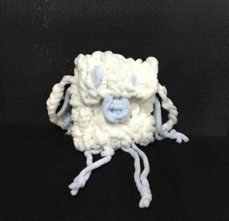 25网络与新媒体班的同学设计的 “小怪兽手提包” 荣获二等奖。她以日常实用为出发点,将可爱创意融入手工制作,通过钩织工艺赋予手提包灵动造型。白色基底搭配清新浅蓝色装饰,再加上趣味五官与 “触角” 配件,让作品既具备收纳功能,又能为日常穿搭增添童趣,完美诠释了 “手工让生活更美好” 的创作理念。