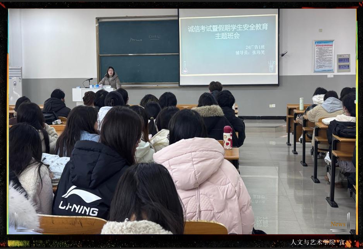 为贯彻落实学校工作要求,严肃期末考试纪律、筑牢学生假期安全防线,近日,我院组织开展诚信考试暨假期安全教育主题班会,通过 “线下为主 + 线上补位” 的形式实现教育全覆盖,为学生平稳应考、安全度假保驾护航。