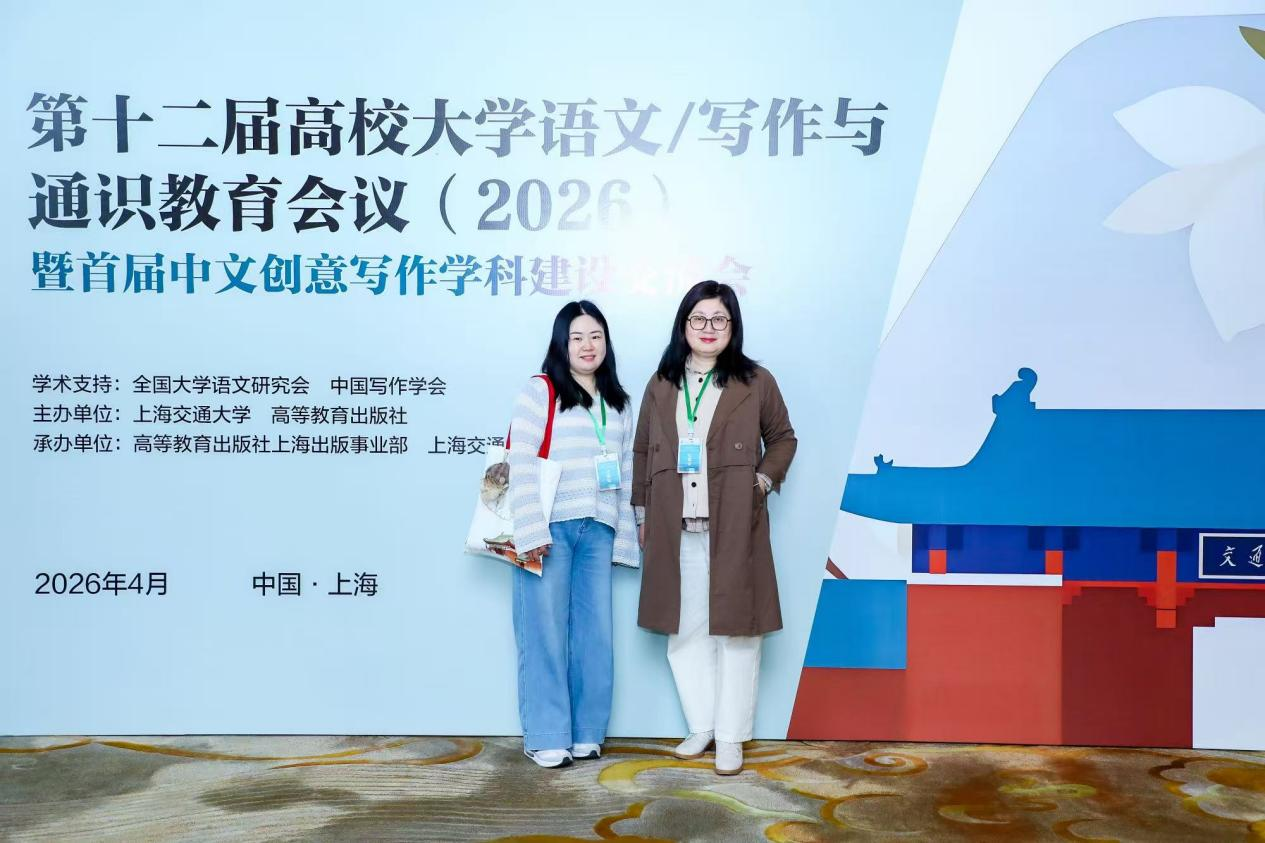 蚌埠工商学院作为一所以应用型人才培养为特色的地方高校,始终将写作教育与通识教育建设作为提升学生综合素养的重要抓手。人文与艺术学院承担全校写作类课程教育教学与课程建设工作。为进一步优化我校写作课程体系、推进校本教材编写, 4 月 17 日至 19 日,中文教研室专任教师胡向玲、孙雅婷代表学校参加由高等教育出版社、上海交通大学联合主办的第十二届高校大学语文、写作与通识教育会议(2026)暨首届中文创意写作学科建设交流会。本次会议在上海举办,来自全国各高校写作与通识教育领域的专家学者齐聚一堂,共探新时代课程与教材建设发展路径。